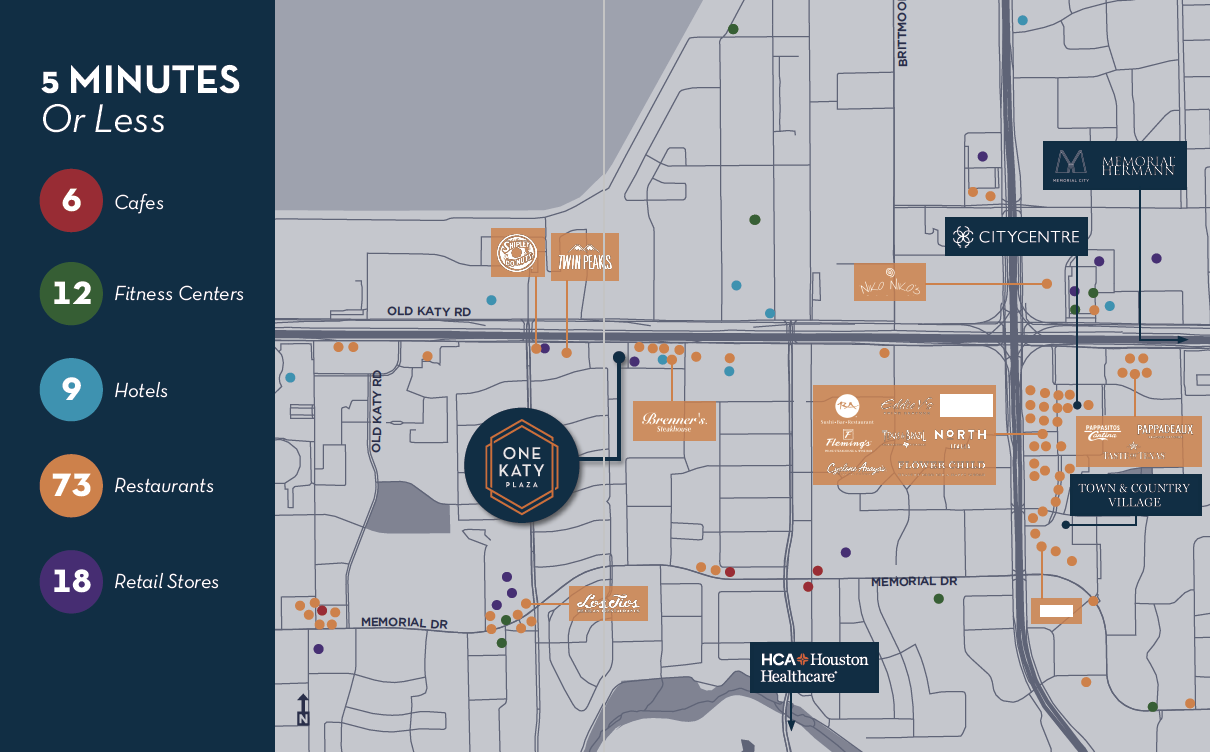 One Katy Plaza is located on the southern side of I-10/Katy Freeway, less than one mile west of Sam Houston Tollway/Beltway 8.